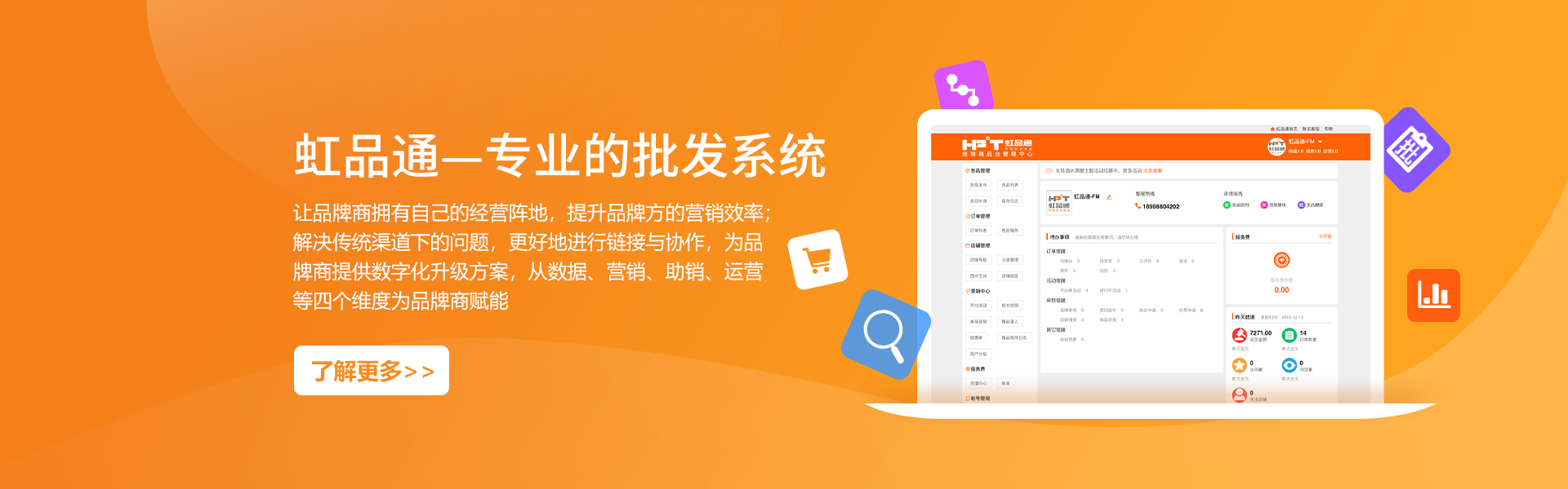 南寧虹品通軟件科技有限公司成立于2014年,是一家開發(fā)軟件技術(shù)服務(wù)公司。公司總部位于中國(guó)綠城南寧市,專注軟件行業(yè)系統(tǒng)支持和供應(yīng)鏈大數(shù)據(jù)開發(fā),并將其應(yīng)用于商業(yè)領(lǐng)域。掌握供應(yīng)鏈系統(tǒng)研發(fā)、商品流通大數(shù)據(jù)、批發(fā)零售商城等核心技術(shù),并持有多項(xiàng)技術(shù)專利和著作權(quán)。公司致力于幫助生產(chǎn)廠家、商品流通、銷售型企業(yè)向互聯(lián)網(wǎng)化轉(zhuǎn)型升級(jí),利用互聯(lián)網(wǎng)獲取客戶、洞察市場(chǎng)、服務(wù)客戶